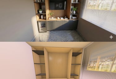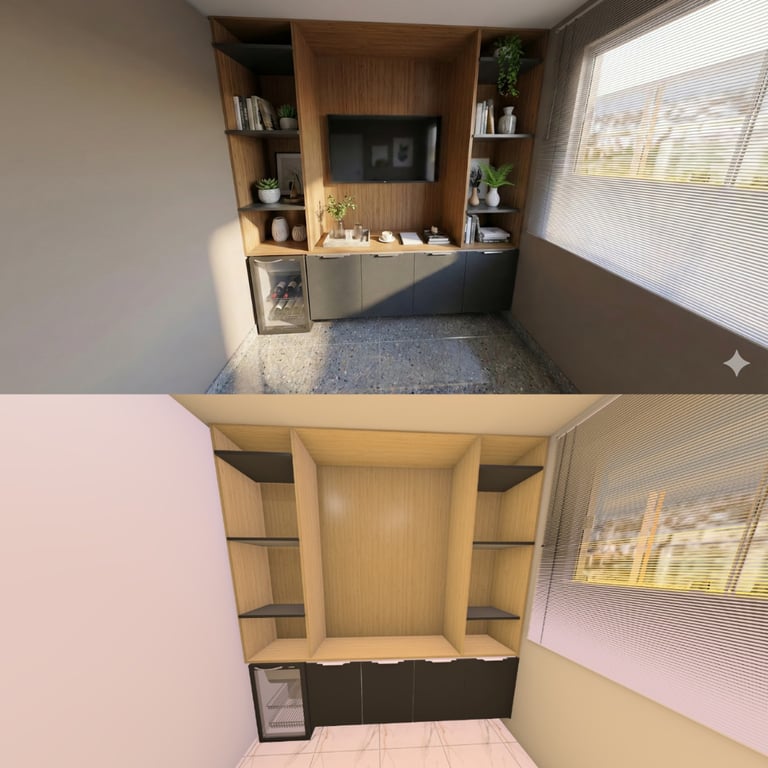 Transformamos seus projetos de móveis planejados em imagens que parecem fotos reais, com atenção a cada detalhe e ambientação.